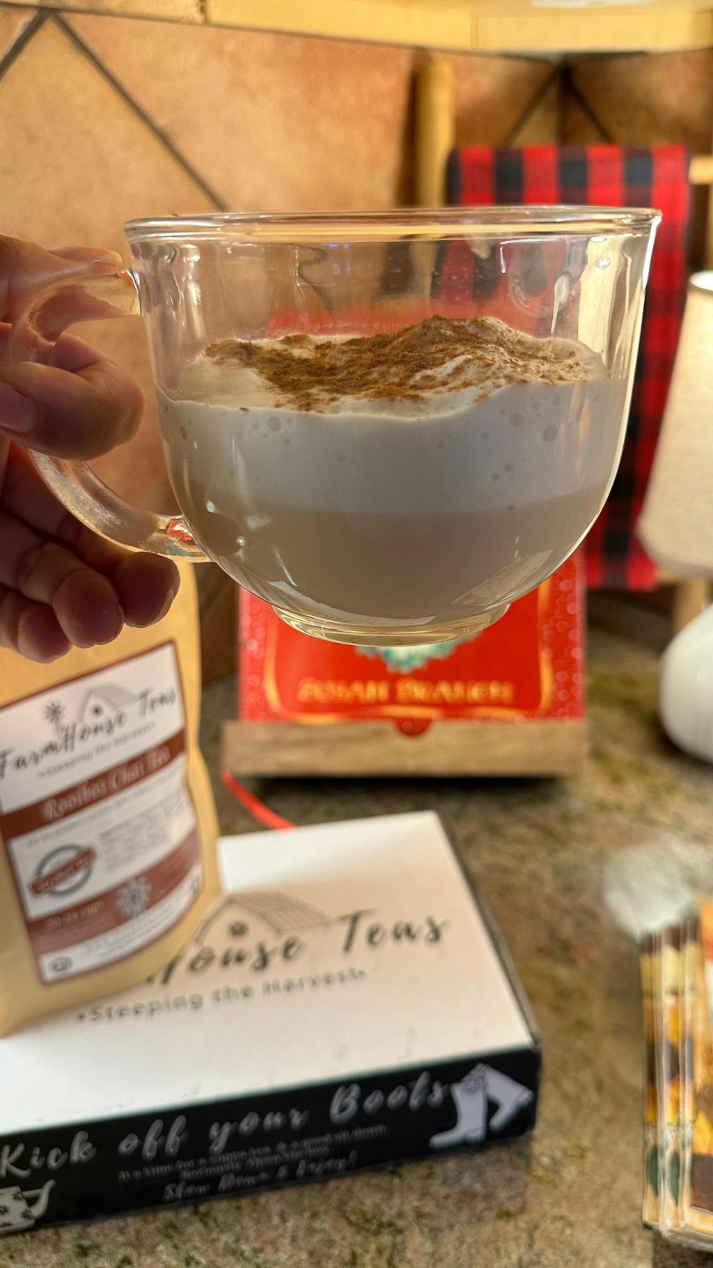 This blend hums with the sweet, earthy notes of red rooibos and the bold warmth of cinnamon and ginger. Cardamom, cloves, and black peppercorns add a spicy depth, while star anise and fennel seed bring a subtle, licorice-like lift.