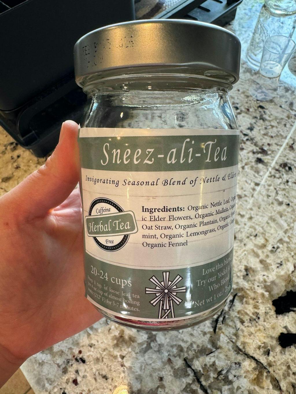 This tea is very tasty and calming to drink. I also purposely bought it to help with my congestion and headaches due to allergies. It's very windy where I live and there's constantly some sort of allergen in the air. This tea has been great. I have been taking it every day for a week now and it really helps clear any congestion I may have. I also find it to be very calming and helpful for my brain fog. I don't know what it exactly causes it, but when I drink my cup, I seem to come alive right after. Thank you, Farmhouse Teas, for creating such special blends! Also, I appreciate the labels. They're easy to peel and then reapply to my reused jam bottles for a cute storage of the teas.
